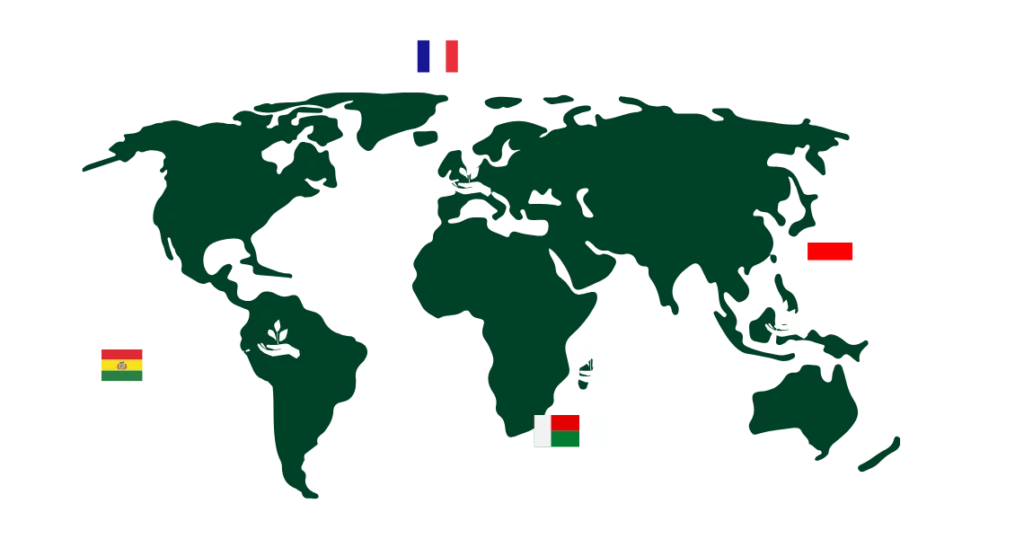 Par notre expertise terrain, nous développons nos propres projets en France et à l’international. Nous intervenons actuellement dans 4 pays à travers le monde sur des actions de reforestation et de développement économique : en Bolivie, à Madagascar, en Indonésie et depuis le printemps 2017 en France. Pays d’origine de l’association nous y menons également des actions de sensibilisation auprès du grand public depuis notre création en 2005.